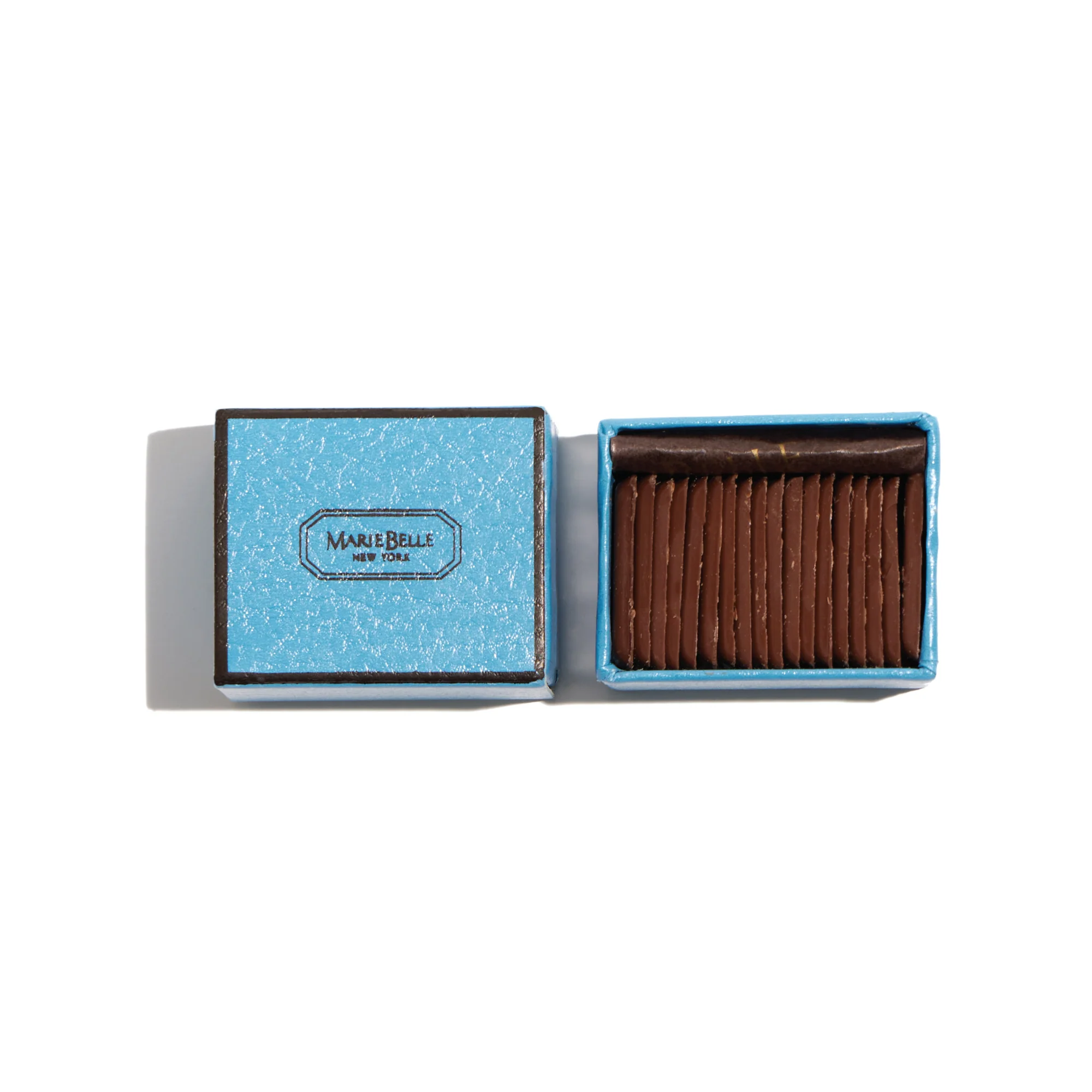 Indulge in bite-size chocolate bliss with MarieBelle New York’s miniature version of Fin du Chocolat Grand; composed of petite milk chocolate tablets, they’re the perfect little snack for when needing to satisfy your sweet tooth. A great gift for hosting as well as for the ultimate chocolate connoisseur, each comes elegantly encased in MarieBelle New York's distinctive signature blue box.